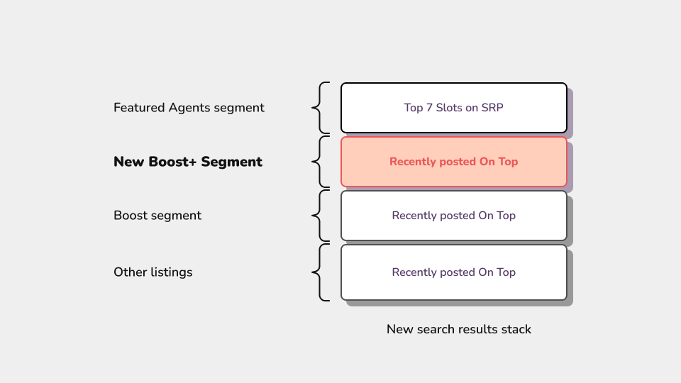 Boost Plus was a premium-priced ad product designed to maximise agent’s listing visibility. The product elevated listings into a new tier in search results. Also, listings would stand out with an upgraded appearance with new interactive elements to drive engagement.