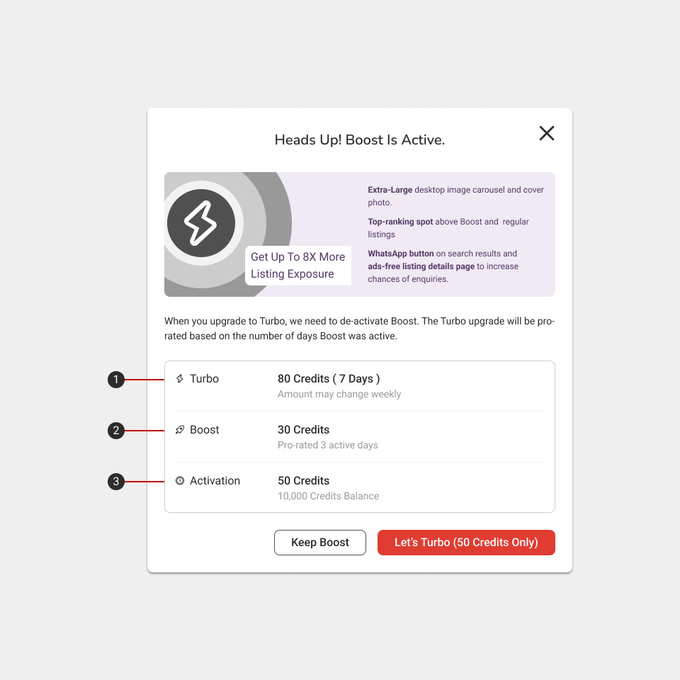 Boost Plus was positioned as a superior alternative to the existing Boost. However, agents felt it as merely an “upsize” rather than an entirely new offering. This lack of distinction contributed to confusion, with some agents overlooking Boost Plus in listing management due to its initial iconography being similar to Boost.