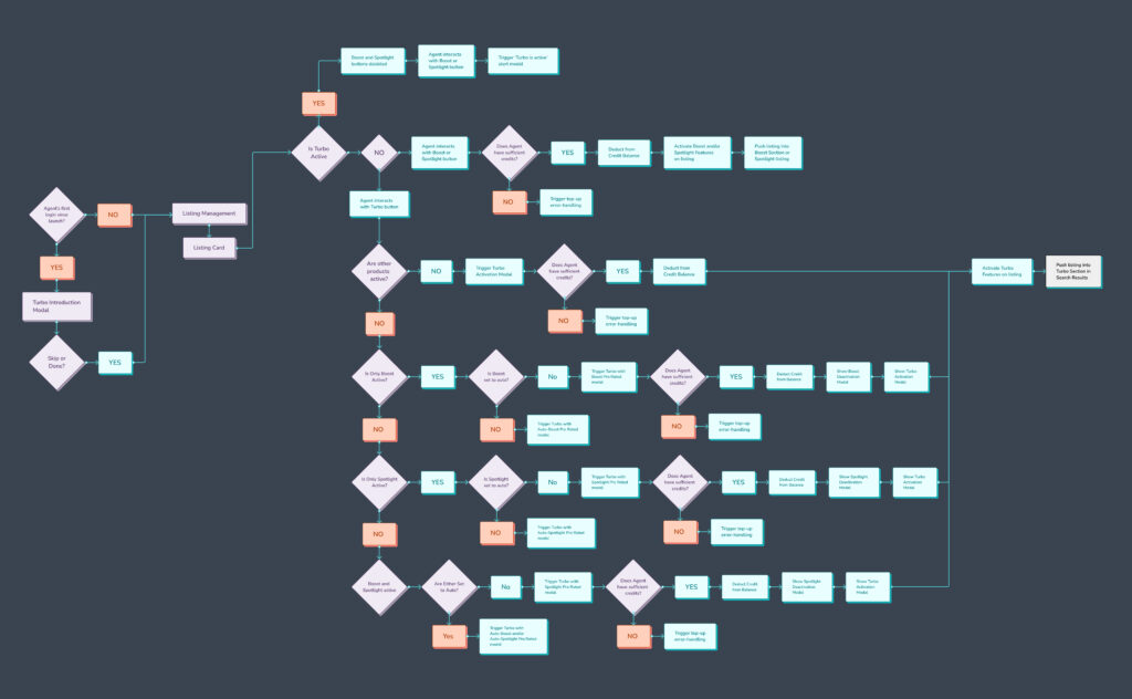 Designing Turbo’s user flow required accounting for listings with several configurations of multiple active products. To handle these scenarios, I created a decision matrix mapping how Turbo would interact with existing products.